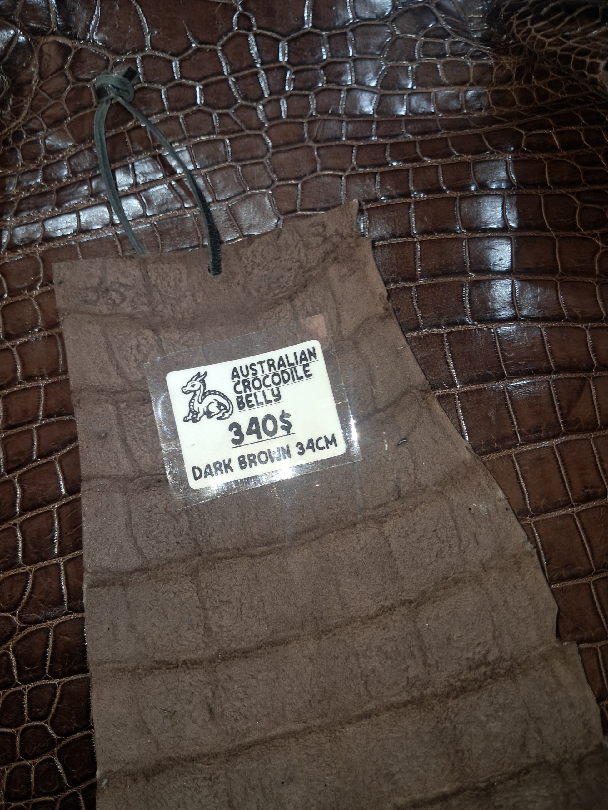 34 cm Australian crocodile belly, First picture of just center best represents color for questions or more pictures please contact us and include the price, length and letter and number written on tag if applicable. 5 foot ruler for size reference.